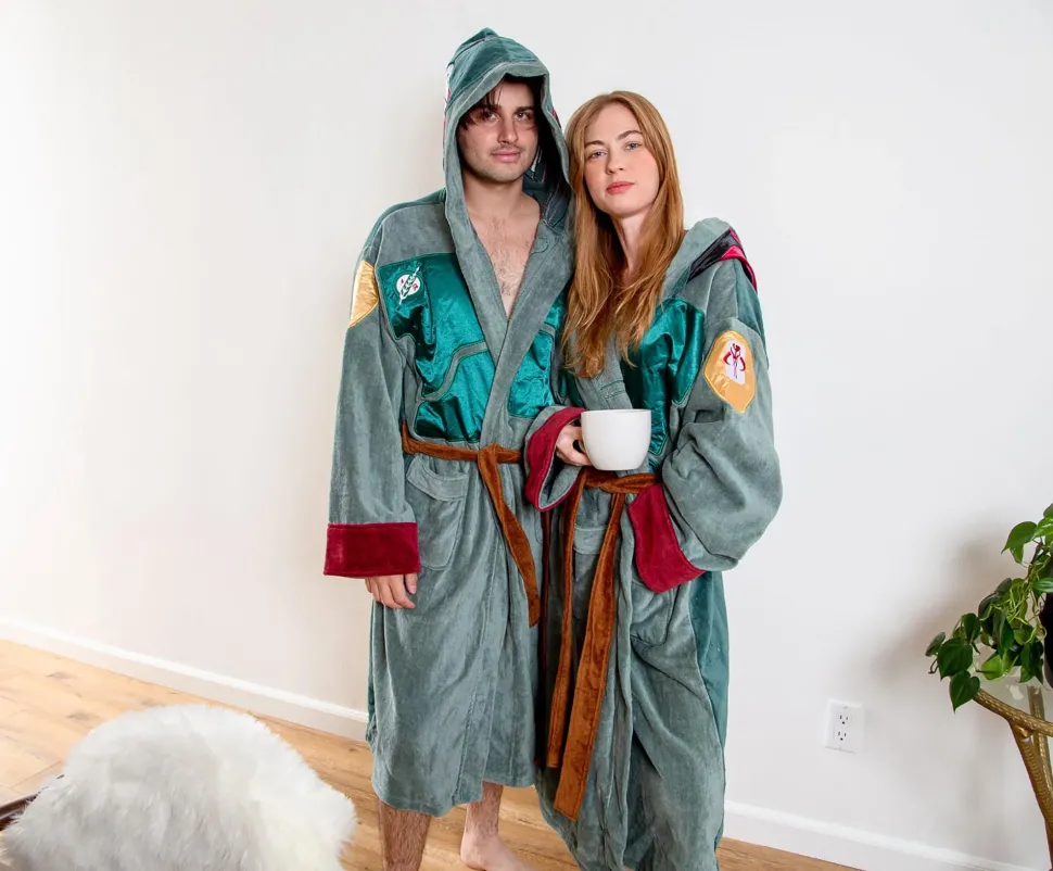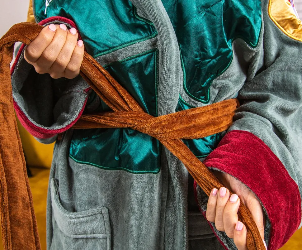 Embody your inner bounty hunter with this comfy Star Wars Boba Fett Adult Bathrobe. Whether you are tracking down your next target or sitting down to sip your morning coffee, this luxurious plush robe will keep you feeling comfortable.