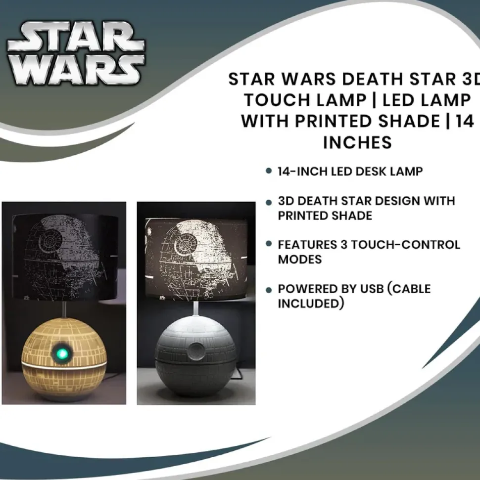 - Star Wars Style: Shine on a light on your Star Wars fandom with this touch-operated desk lamp. Shaped like the iconic Death Star, this collectible touch lamp is specially crafted with fans in mind.
