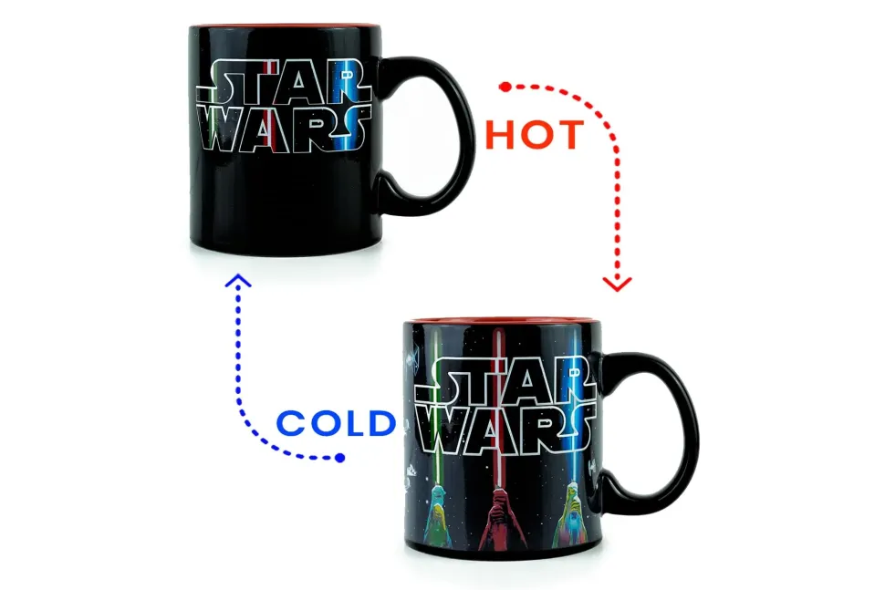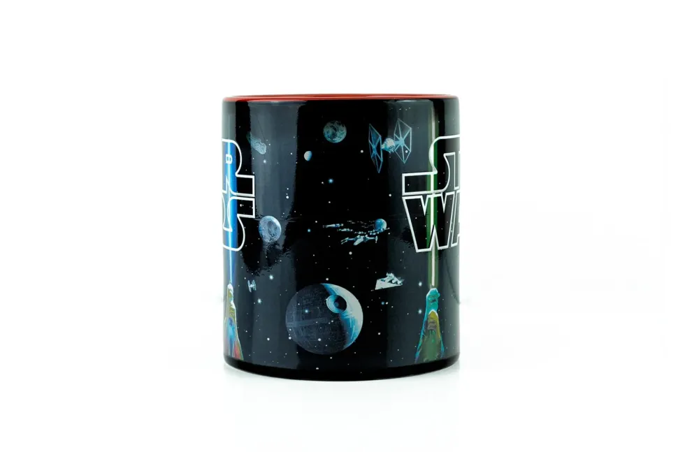 Just as iconic as the logo itself, where would Star Wars be without lightsabers! This officially licensed Star Wars treasure captures the essence of the epic series and depicts in on the face of this Star Wars heat changing mug! This Star Wars lightsaber mug will start off as displaying just the franchise logo and the Battle of the Death Star in the background. When you add in your coffee or other hot drinks, this lightsaber mug comes to life! Watch as each lightsaber appears around the Star Wars heat changing mug! Perfect for any Star Wars fan, this lightsaber coffee mug is sure to bring a smile to any aspiring Jedi’s face.