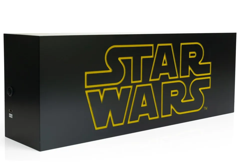 This Official Star Wars Logo Light Box looks like it came straight off the iconic opening crawl of the Star Wars saga films. Put the finishing touch on your Star Wars collection with this fandom-themed mood light. Perfect for displaying, this decorative light box measures approximately 17 x 6 x 4 inches. Powered by USB (cable included) or electricity (USB to AC adapter included), this mood light uses energy-efficient and long-lasting LED light bulbs to illuminate your space.