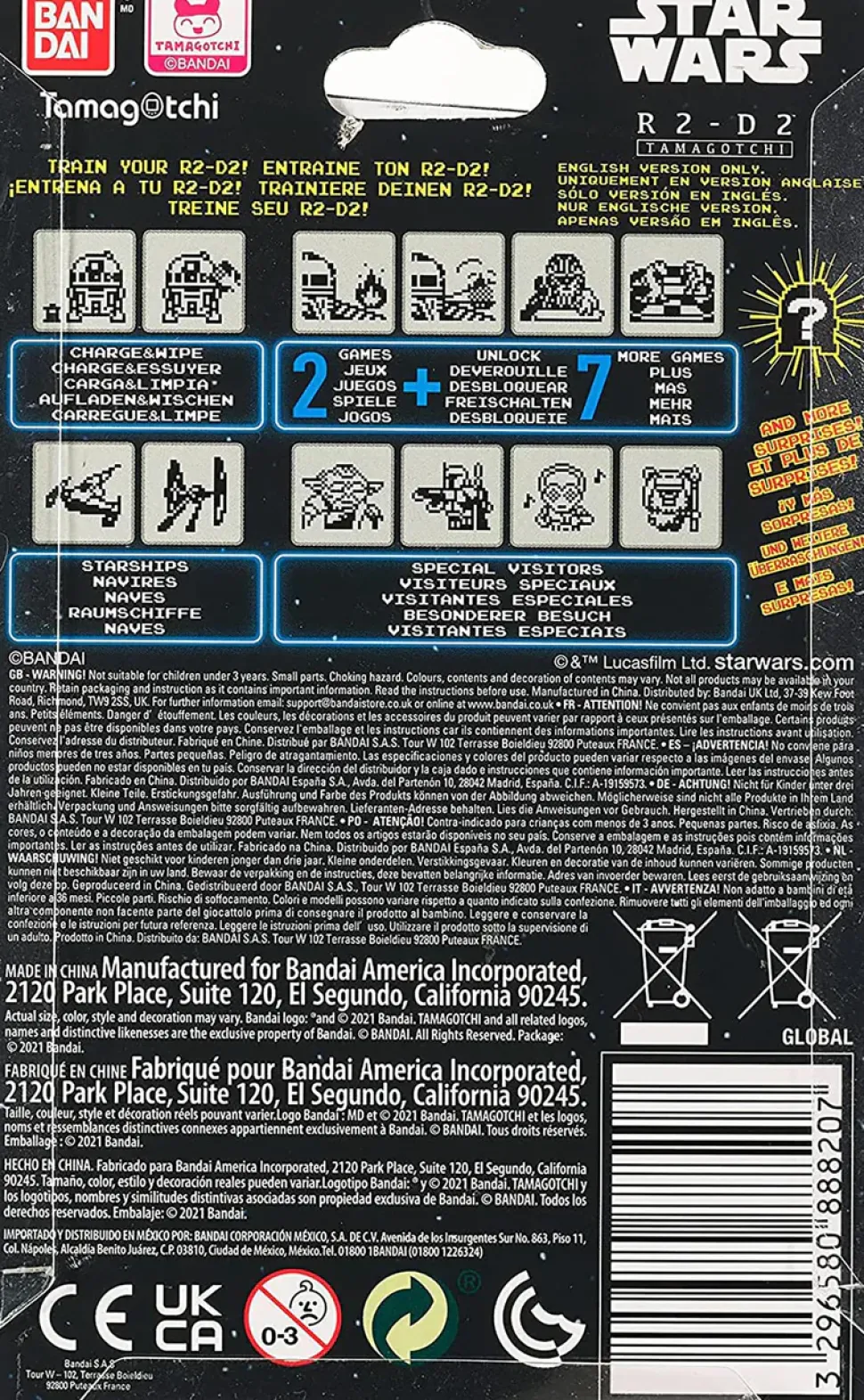 - INCLUDES: Star Wars R2-D2 Tamagotchi with a classic white R2-D2 shell on a chain to take with you everywhere! Batteries (2xLR44) included.