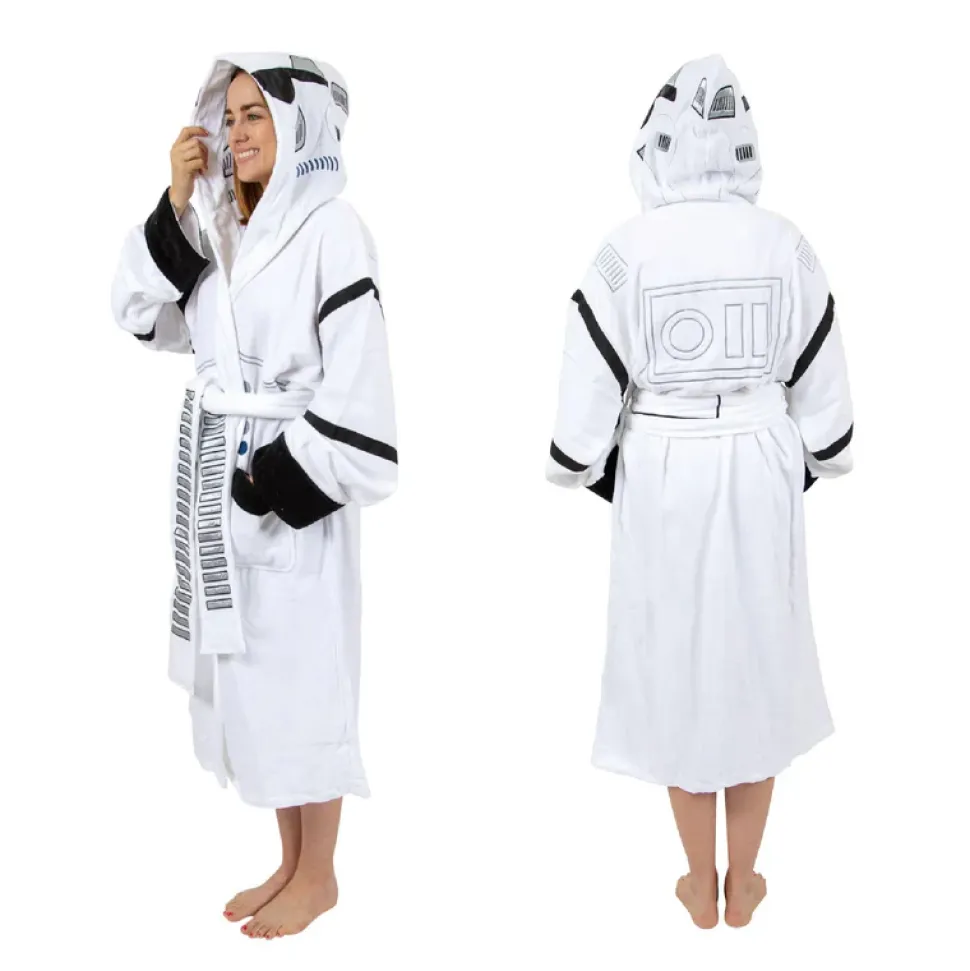 How does a Stormtrooper relax after a hard day of crushing the Rebellion? Find out for yourself! Step into the boots of a TK trooper and snuggle up in this comfyStar Warsbathrobe.