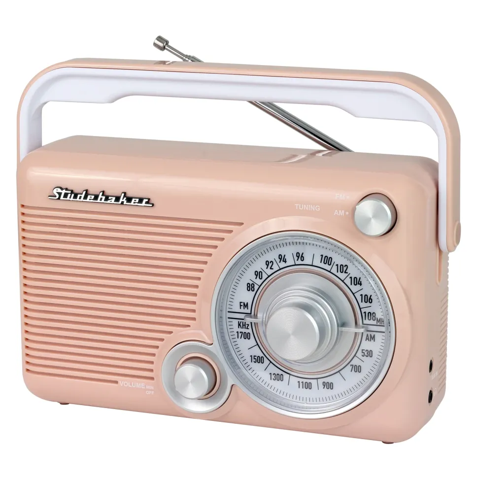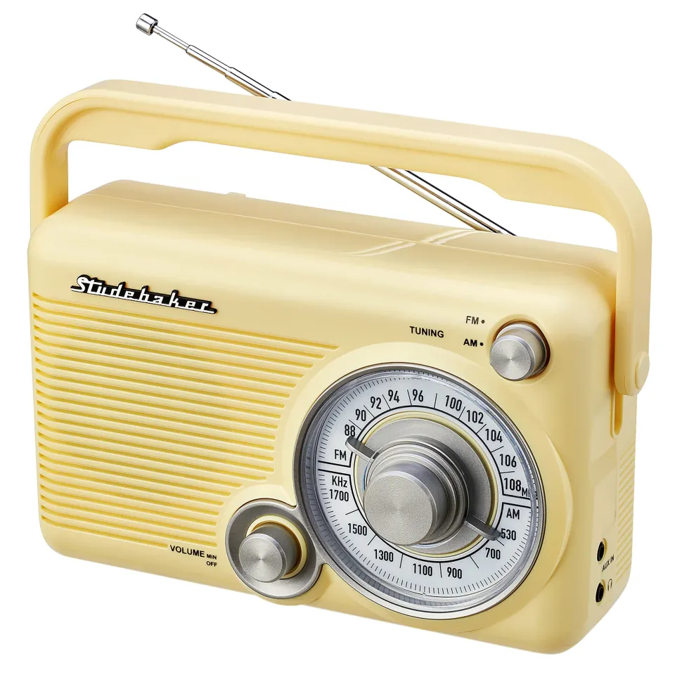 Classic retro design and great features abound in this Portable AM/FM Radio. The compact, durable design features a carrying handle and telescopic antenna. Use the headphone jack for private listening to your favorite radio station.