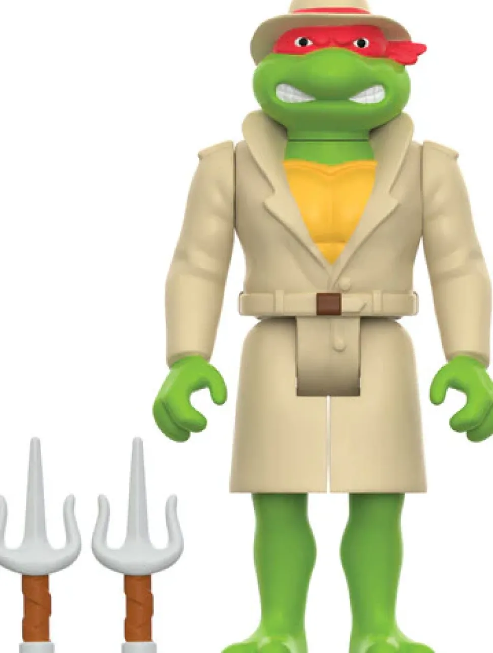 This articulated, 3.75” scale Teenage Mutant Ninja Turtles ReAction Figure of Undercover Raphael is inspired by his appearance in the classic ‘80s TMNT animated show and includes a pair of sai accessories.