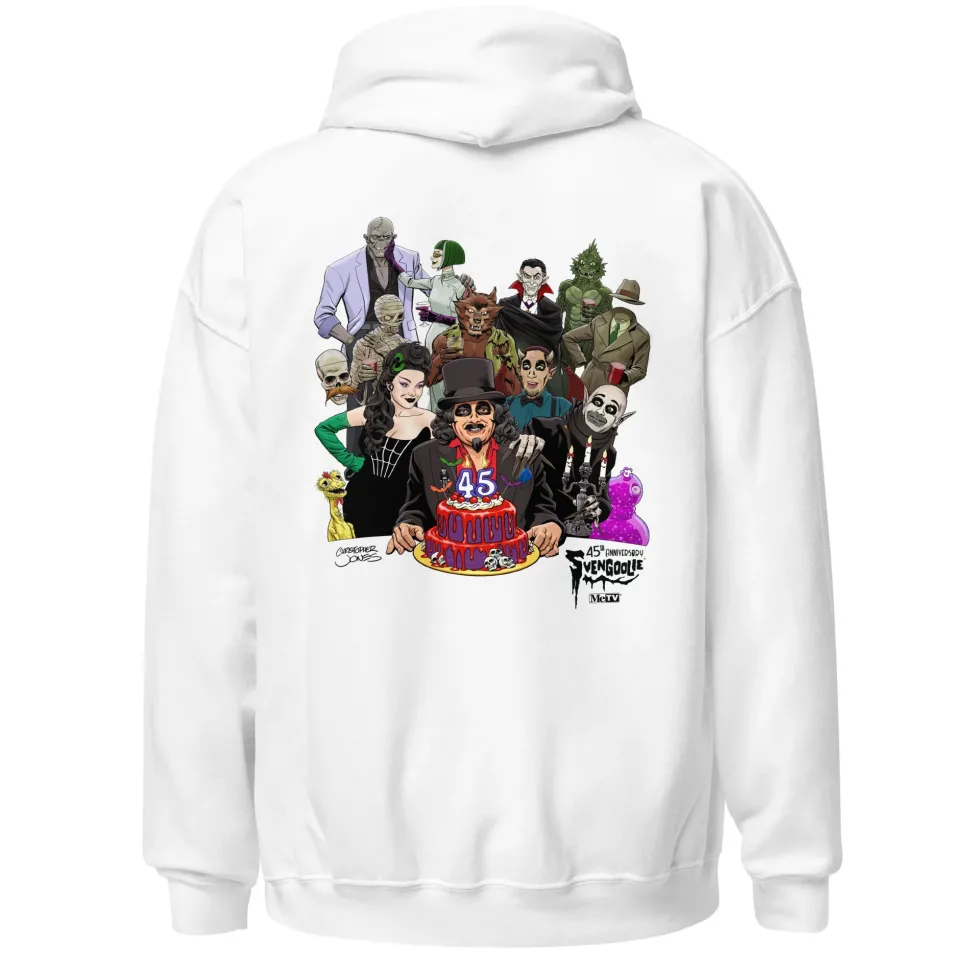 Celebrate 45 years of Svengoolie by joining this party! This monster bash is honoring our favorite horror host. Since 1979, Svengoolie and monsters have gone together like cake and a party! Acclaimed comic artist Christopher Jones created this original piece to kick off a year of celebrating Svengoolie. Shop our and join us on Saturdays on MeTV.