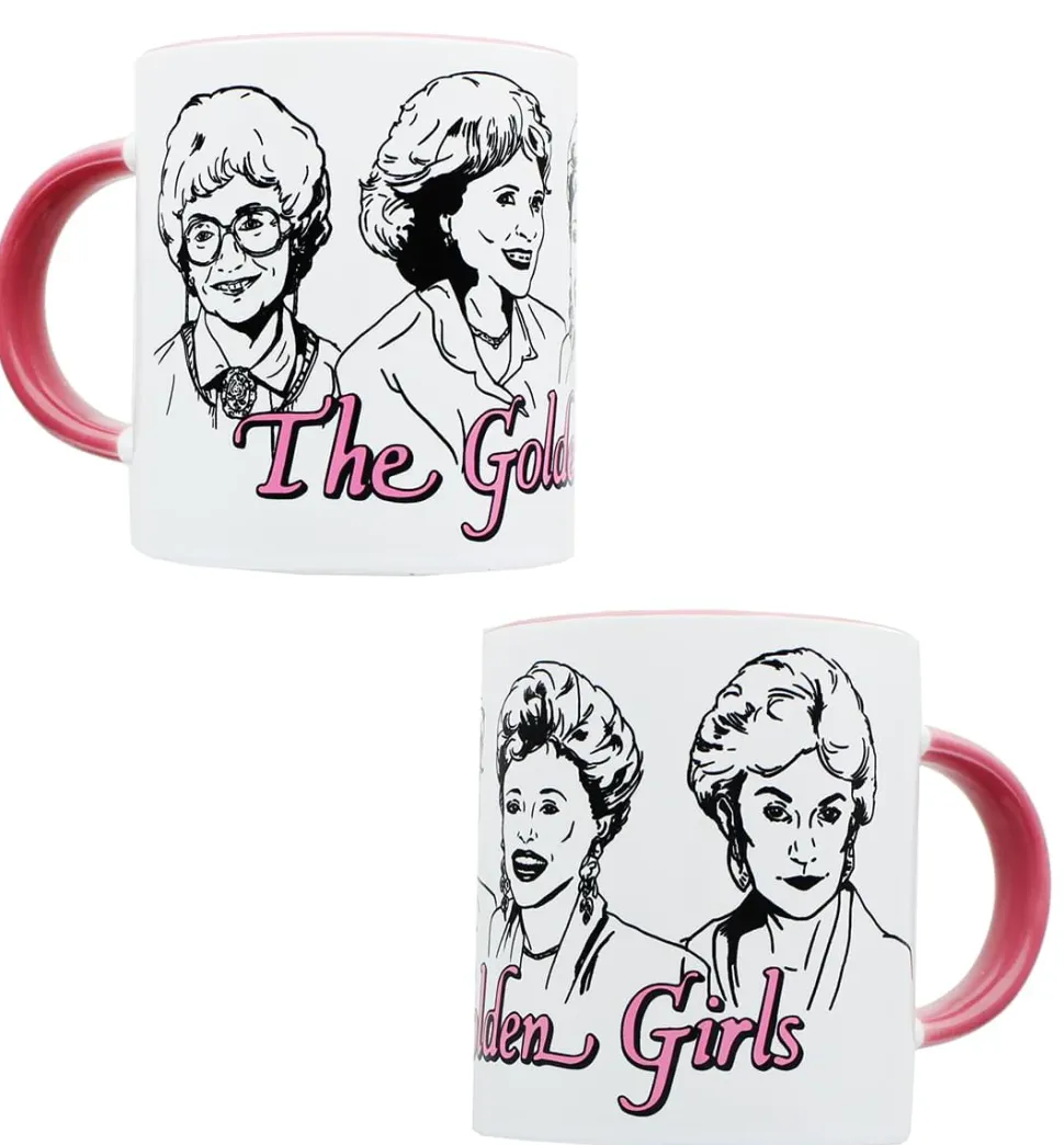 Enjoy a good laugh with this Golden Girls Coffee Mug from the classic ’80s sitcom. Make a statement with trendsetting drinkware that celebrates the “golden years,” featuring fun styling and quality print graphics. Inspired by the comedic foursome, this glossy white coffee mug depicts line art of the show’s iconic main cast, including Rose, Blanche, Sophia, and Dorothy. Of course, it wouldn’t be The Golden Girls without a little pizazz thrown into the mix. In the spirit of their colorful personalities, the cup features an attractive pink logo and matching handle to provide a fun pop of color.