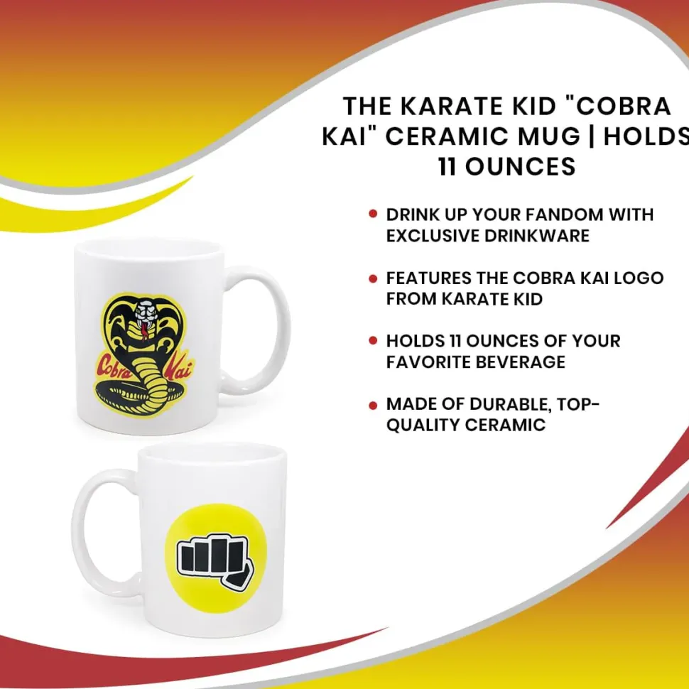 Ready for some bone-crunching, face-smashing, good ol’ American karate? Show no mercy with this exclusive Cobra Kai mug. Inspired by the classic Karate Kid franchise, this collectible drinkware features the iconic Cobra Kai logo. (You know, like the badass snake.)
