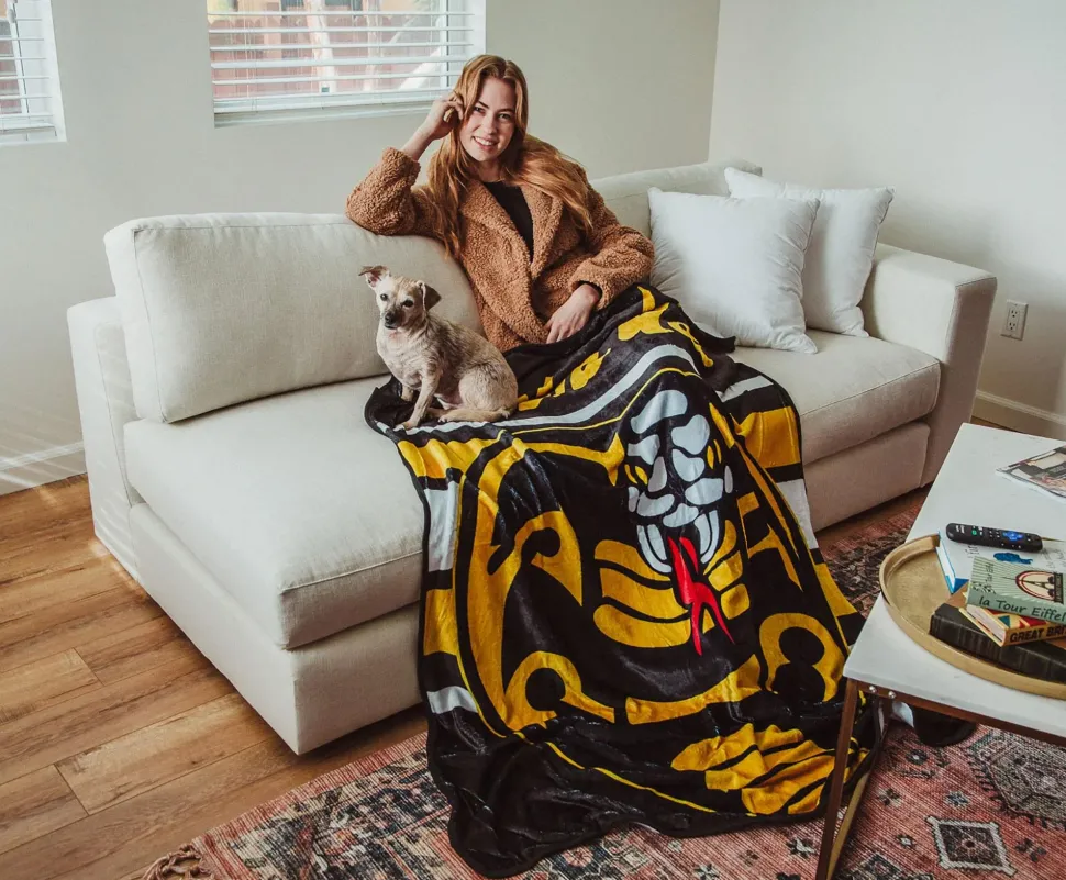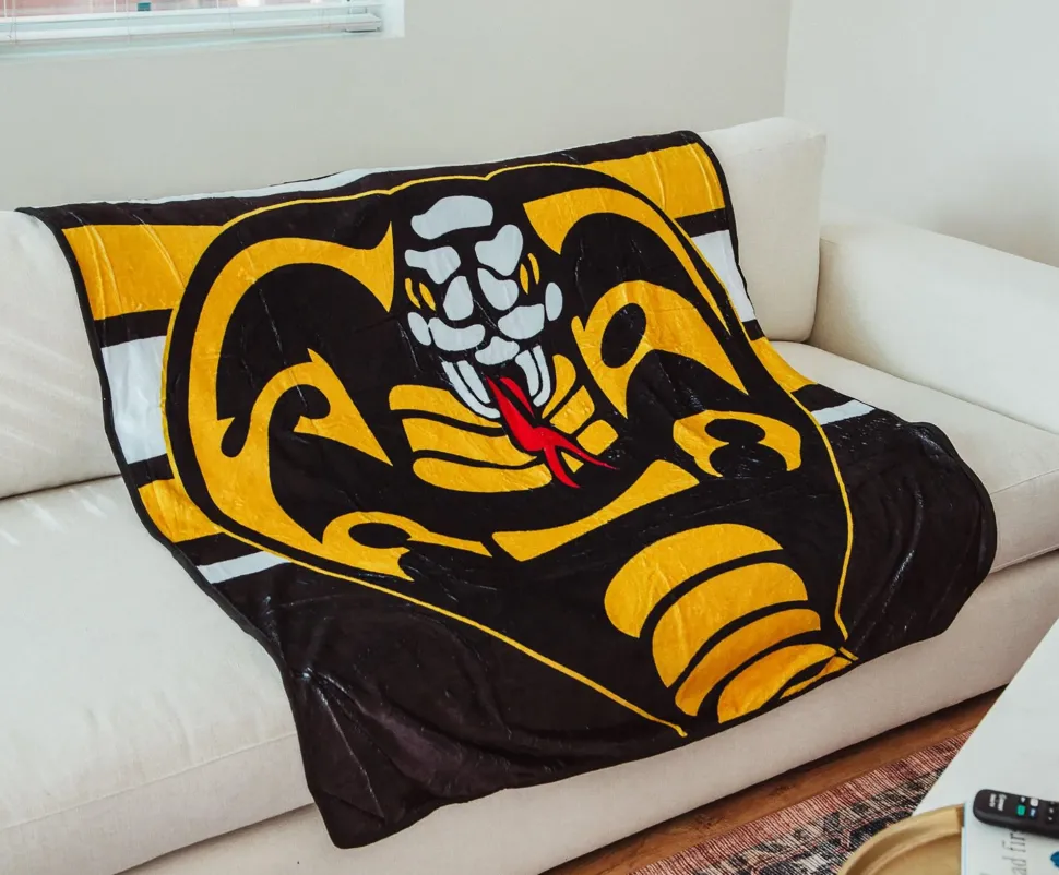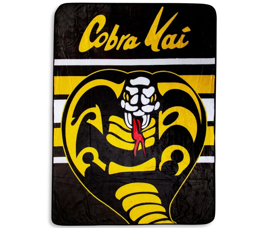 Is exhaustion sweeping your leg? Spend your nights dreaming of how you’re going to defeat Daniel LaRusso while wrapped in this cozy blanket. (Just watch out for that illegal crane kick.) Strike first on this officially licensed Cobra Kai collectible.