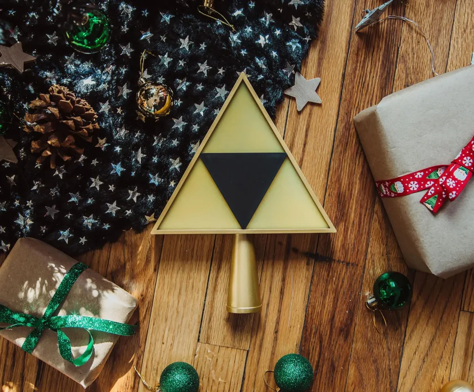 Obtain the Power of the Chosen One this holiday season with the festive Triforce Light-Up Tree Topper.