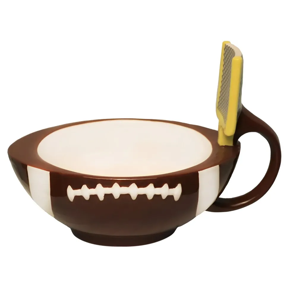 Make the winning play with this exclusive mug shaped like a football and complete with a goalpost attached to the handle.