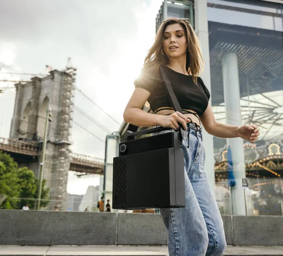 - Ultimate portability with folding handle and removable guitar strap